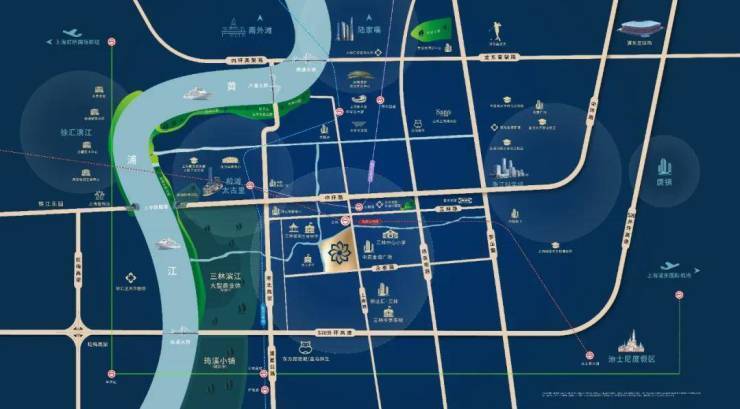 同时与规划中的三林滨江不同,前滩·东方湾一方面所在的片区是三林现有居住氛围更为成熟的片区,周边城市资源已然非常醇熟,比如中房金谊广场、新达汇·三林、上海三林中学、上海市育人中学等;