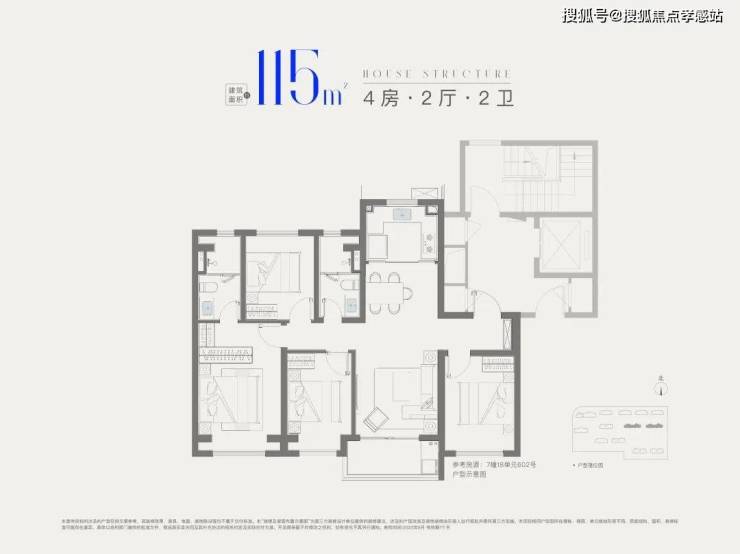 建面约115㎡4房2厅2卫,做到了四开间朝南+全卧室带飘窗+主卧套房设计,一步到位的大四房户型。兼顾大4房的功能性和空间尺度,非常难得,更适合四口之家或三代同堂家庭居住。