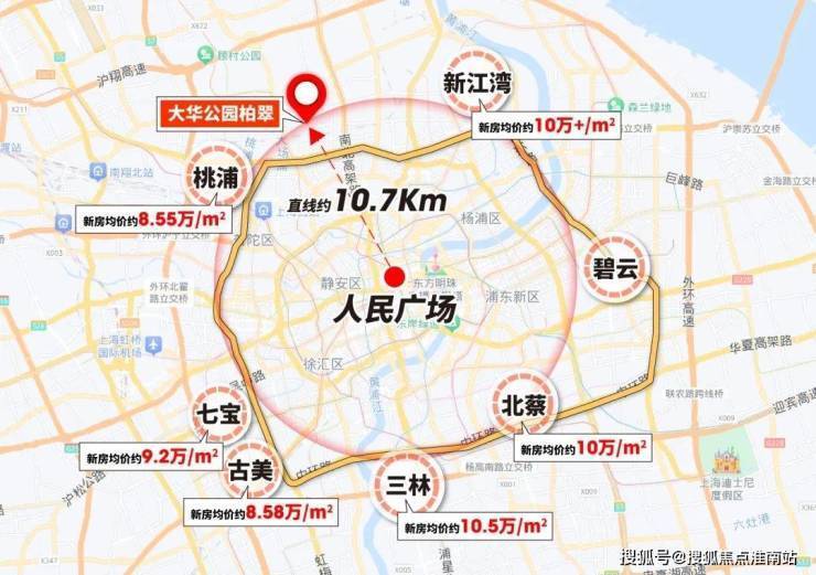第一,南北高架+中环,大华公园柏翠串联起了上海更昂贵的置业地。