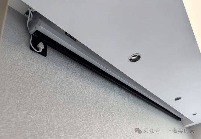 我们有听说配备电视背景墙的,但应该全上海都没听说过标配投影幕布的吧——时代乐章全屋预留投影仪卡槽点位、装配电机及投影幕布,避免后期自行装修破坏墙面,投影也是年轻人更能接受的生活方式;同时,客厅空间也显得更大更实用,背景墙+电视的搭配相对更厚重一些。