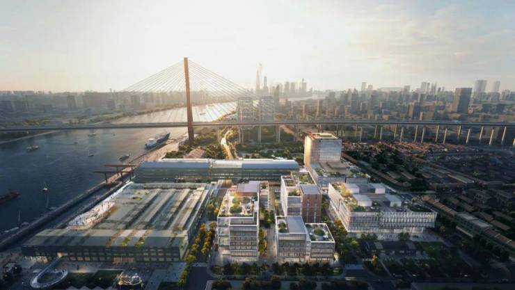 人文社交场域:杨浦滨江大桥东核心区规划艺术会客厅、滨江观景平台等主题空间,定期举办滨江市集。如杨浦滨江创智中心-上海电站辅机厂西厂厂房将变身会议中心,辅助车间将打造成展览中心,由市民广场、无界剧场、观景餐厅组成。一高一矮的跨度空间将原有厂房释放出来,二层空中步道从出让地块一直贯穿至滨江线。