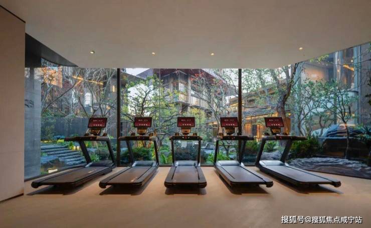 上海首个“不会着凉的”观景健身房,落地玻璃窗正对山川溪谷的“三境九韵”景观,科技系统以金茂毛细管网实现隐形恒温。
