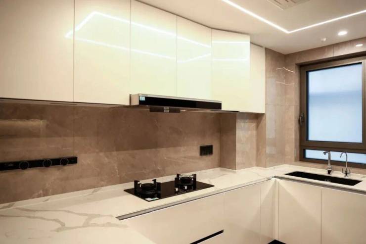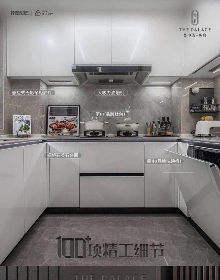 厨房空间,甄选西门子新款的抽油烟机、灶具、洗碗机等,甚至连大部分项目不配备的冰箱也是交付标准;还特别配置了轨道插座、前端净水器和凉霸;吊轨金属玻璃移门,既美观又方便清理。