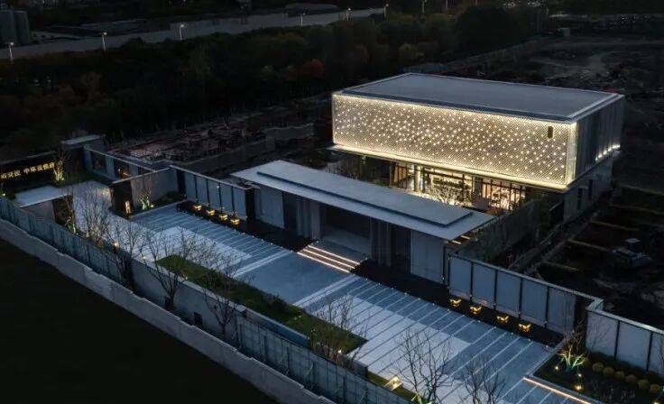 美学五感之——颜值感建筑美学:整体建筑立面一二层基座部分为石材,三层及以上主体部分以玻璃+铝板幕墙为主。光感幕墙、立体边框、晶体塔冠,建筑整体效果现代精致,契合当代艺术美学。