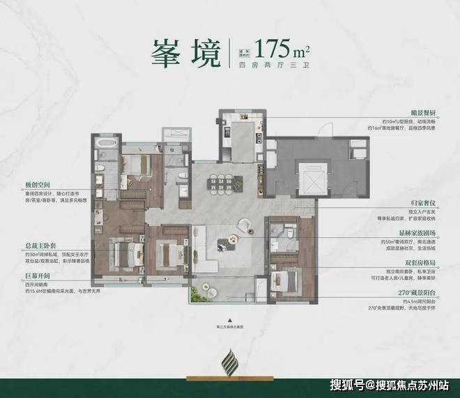 其中,最备受意向客户瞩目的,当属被誉为”传世孤品“的175㎡峯境户型。