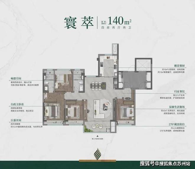 约15.4M四开间朝南,巨幕采光;约50㎡奢阔方厅,U型明厨+约16㎡全景餐厅,270°瞰景阳台,一键切换观影、轰趴、家宴等模式;总裁级主卧套,奢配衣厅/双台盆/观景浴缸/飘窗等,实现主卧小家化。