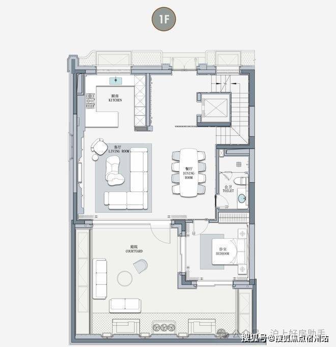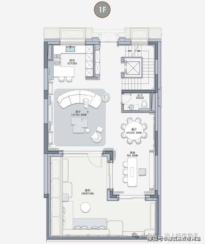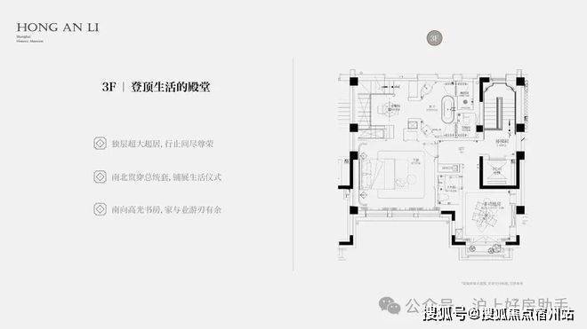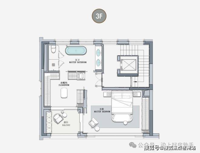 客厅互通,彰显家族生活的轩阔厅堂,2F家庭层,儿女的幸福与陪伴皆在左右,3F总裁套房式Penthouse,用具象的尺度描写人生成就的高度。