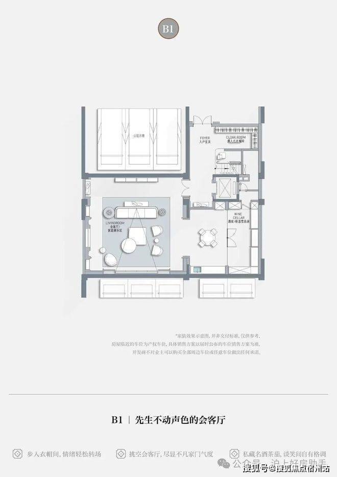 • 从容抵达步入地下会客厅,转角衣帽间换一身便服,轻松切换身份情绪