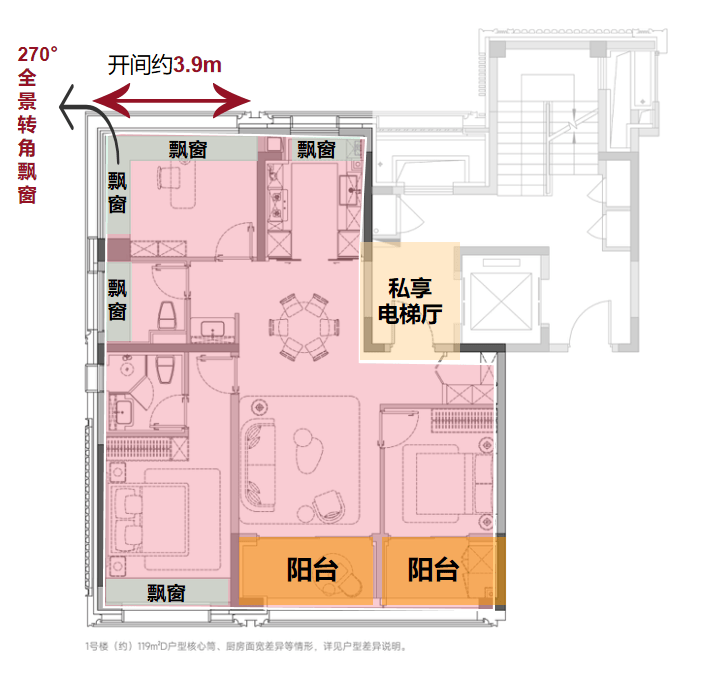 户型设计全屋飘窗与大尺度阳台,采光度全面提升,空间感倍增。
