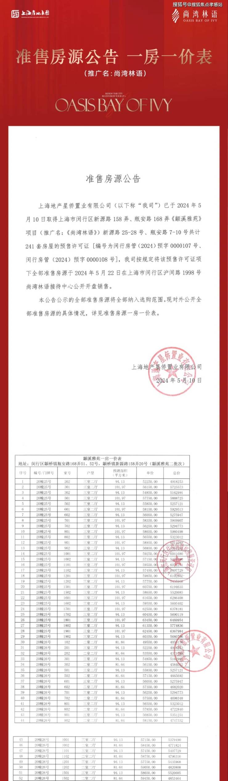 2022年9月23日,上海地产星侨置业有限公司以底价552183万元竞得闵行区颛桥镇生态隔带G9颛桥中心村段10-03、19-01、19-05、20-01地块(“城中村”改造项目-中心村),楼板价29760元/㎡,房地联动价为62000元/㎡!