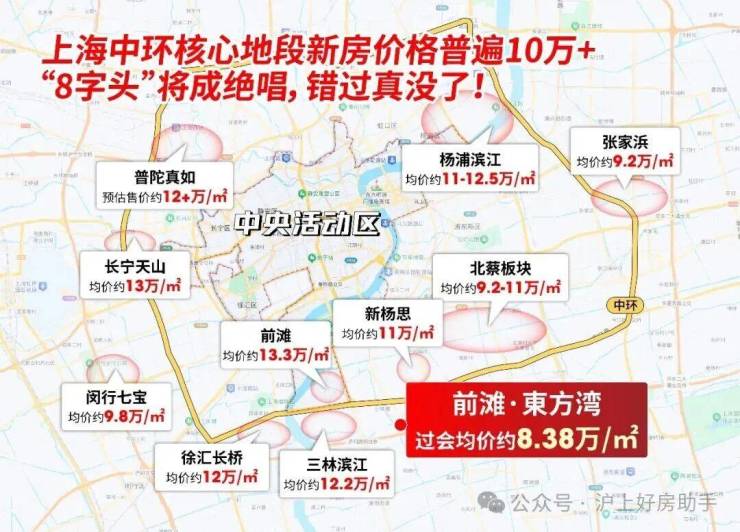 三林滨江全面突破12万/㎡,北蔡新“地王”均价约11.4万/㎡,张家浜稳站9万/+㎡;即使是外环外的唐镇也来到8.3万/㎡……