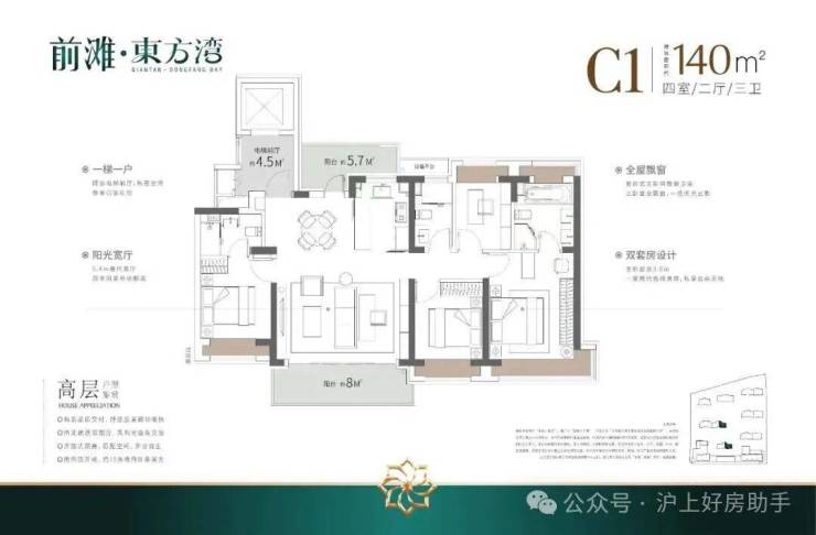 这2个户型是“一步到位”的大4房,无论是功能性还是尺度感,都是浦东改善置换金字塔塔尖的存在,未来纵享长久板块发展红利!