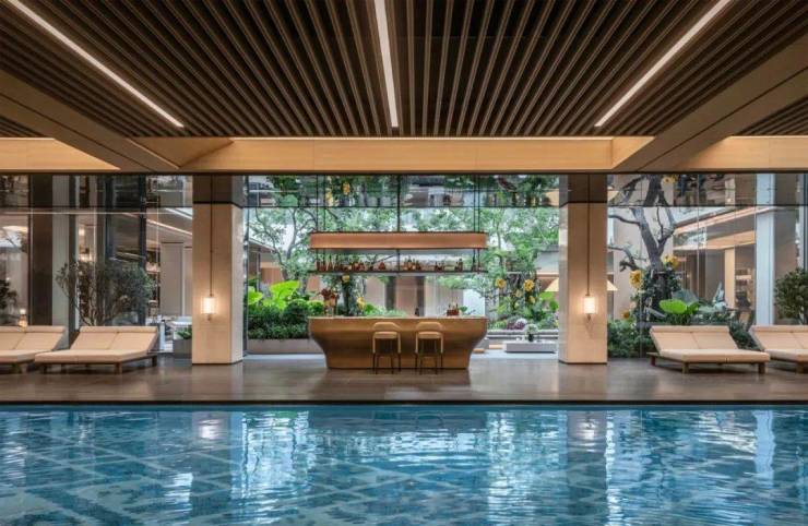 金茂棠前打造了建面约1600平的高定会所 ,整个会所配置了私宴厅、自然健身房、无界泳池、整体采用围合式建筑设计,与下沉式庭园四面联通,内外情景交融,开启会所体验全新升级;也是杨行板块第一个会所有泳池的高端住区。