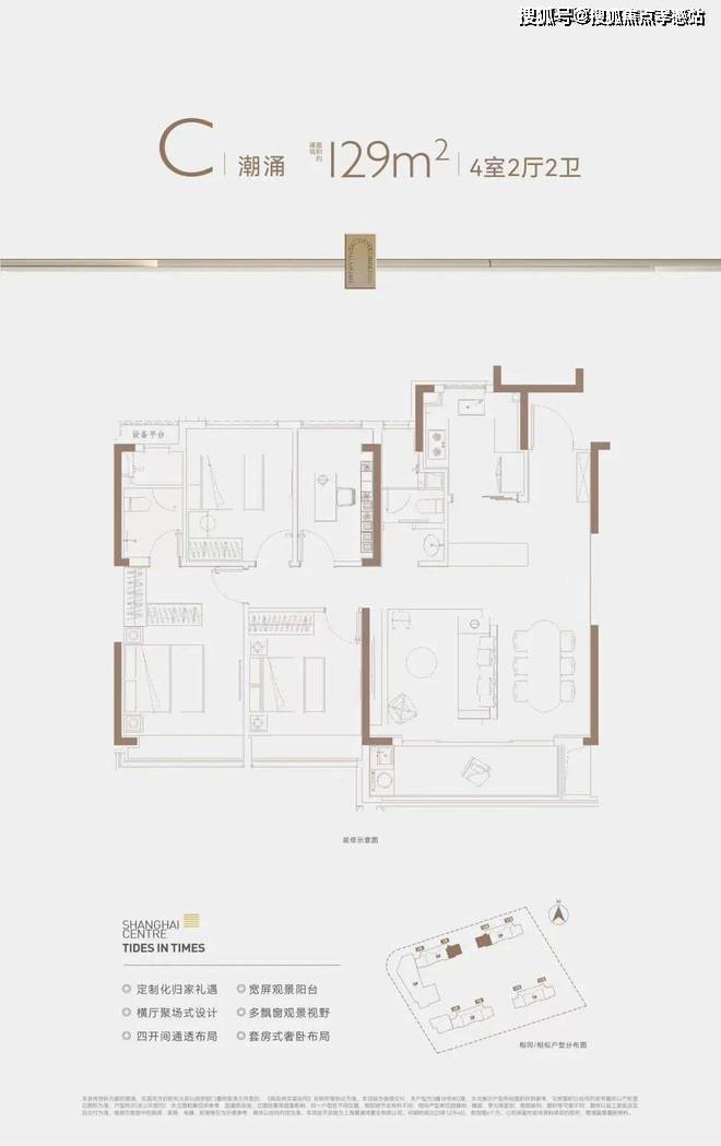 第二,项目本次推出的建面约129㎡4房, 是区域目前在售的4房户型。