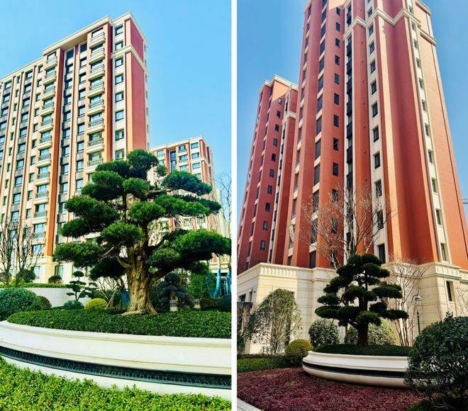 所有的植被树木,均在发展商自有苗圃内预先孕育及生长,成熟后再移植至社区内,包括名贵的罗汉松、 泰山雪松、橄榄树,通通先在自有苗圃内适应2年以上再全冠移植。