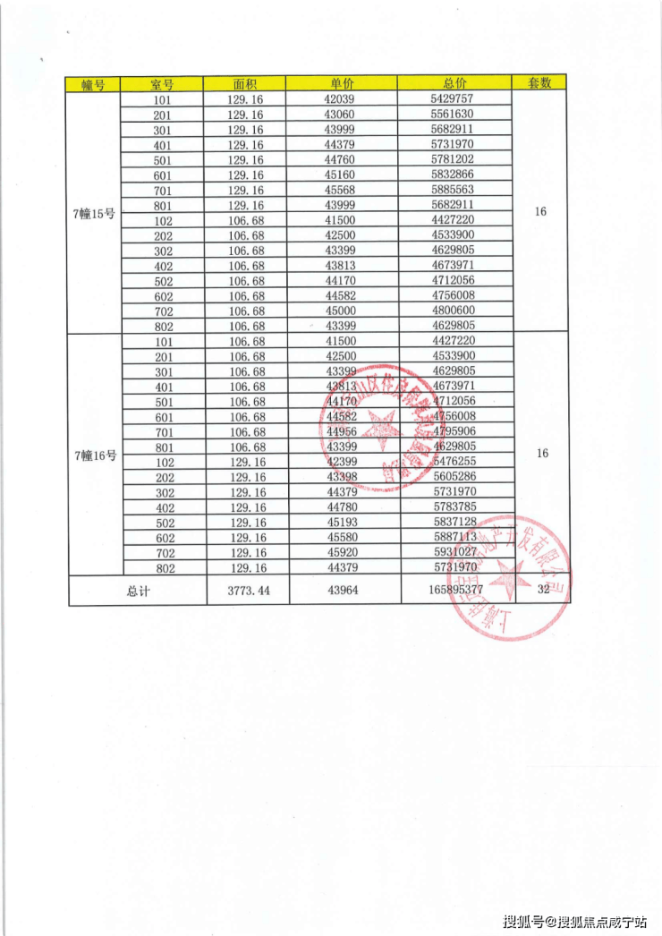 项目一房一价表