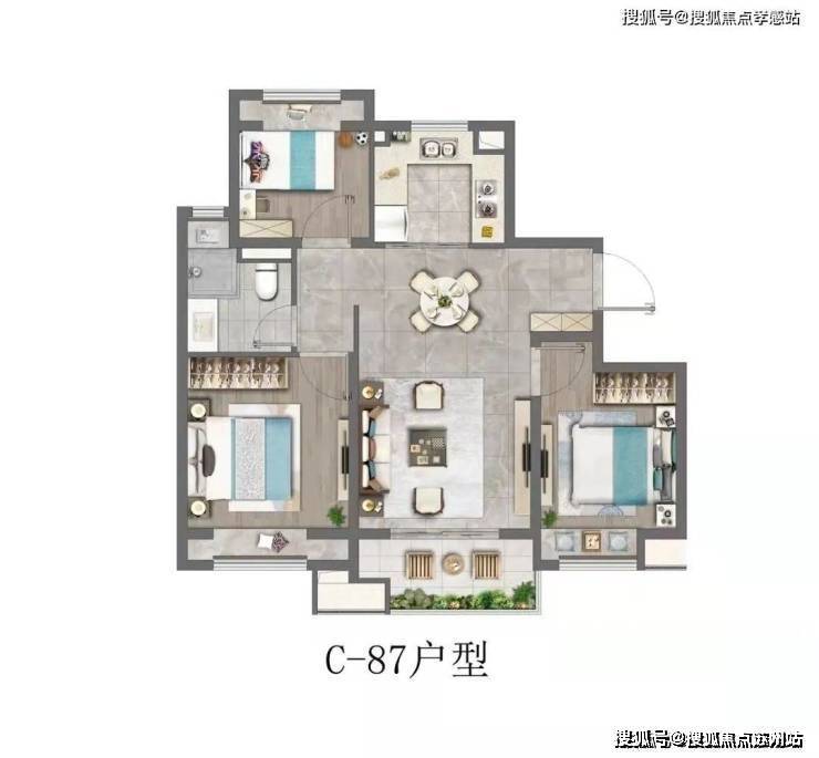 建面约76-104㎡2~3房