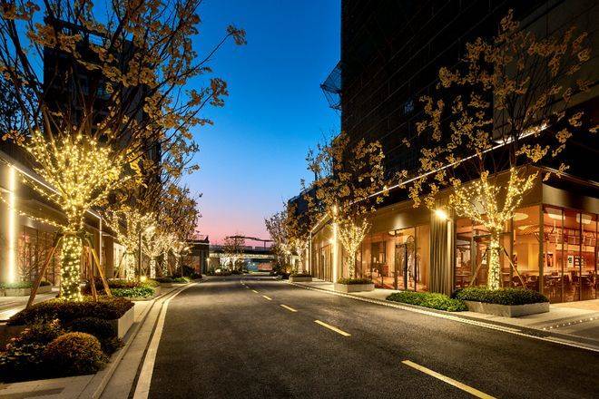 出门即街区与公园,春日暖阳,草木新绿,闻着咖啡香,看沿街的品质店铺各美其美,入夜月朗,璀璨的灯火次第亮起。