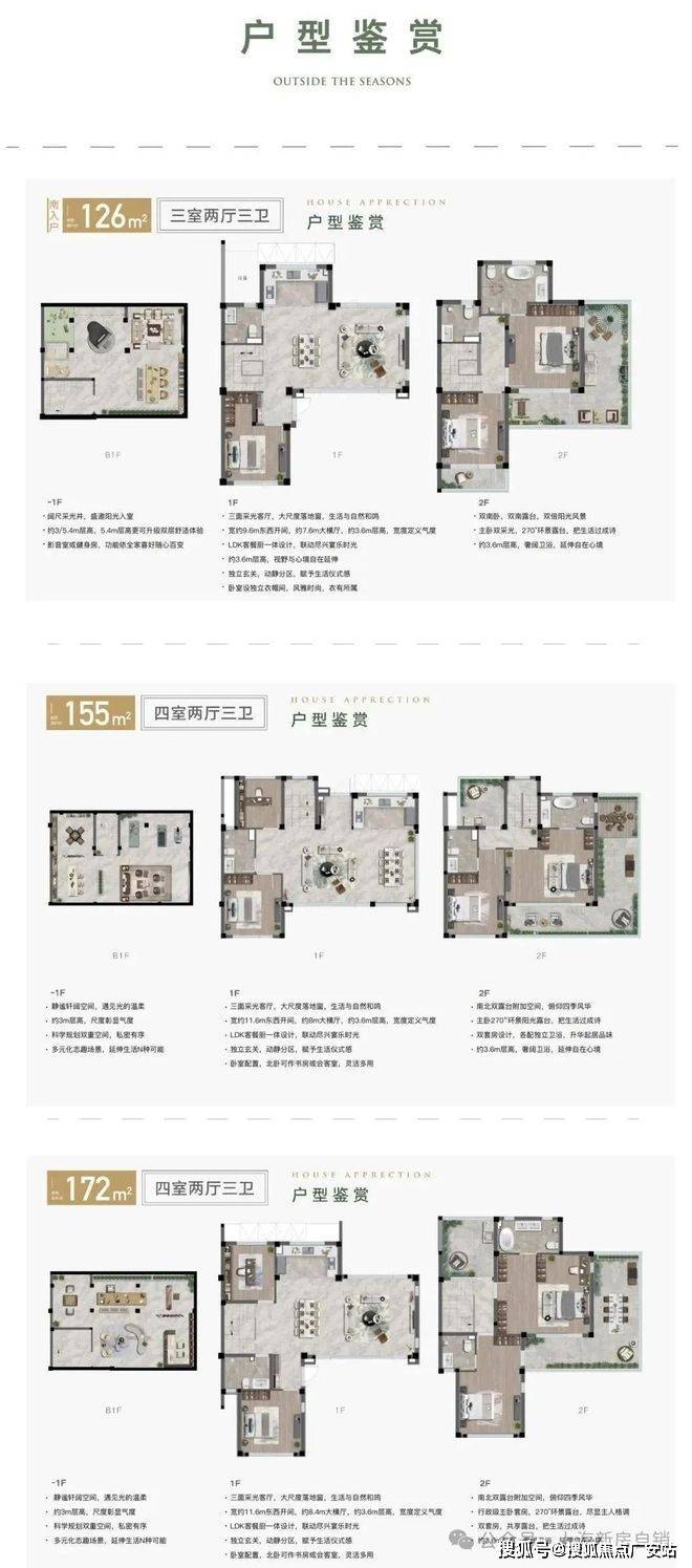 建面约126㎡、155㎡、172㎡合院