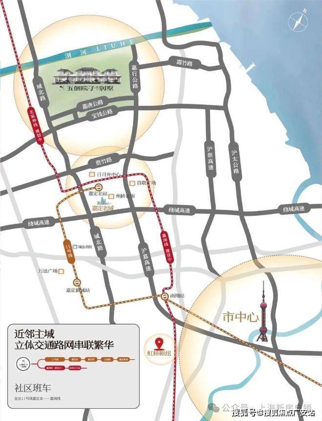 项目附近有嘉行公路、城北路、沪崇高速、沪太公路,霜竹路、宝钱公路、胜竹路、绕城高速“四纵四横”路网,通达主城区