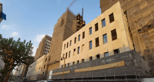 从目前呈现的立面来看,住宅部分的立面是干挂石材,经典外滩建筑群风格。