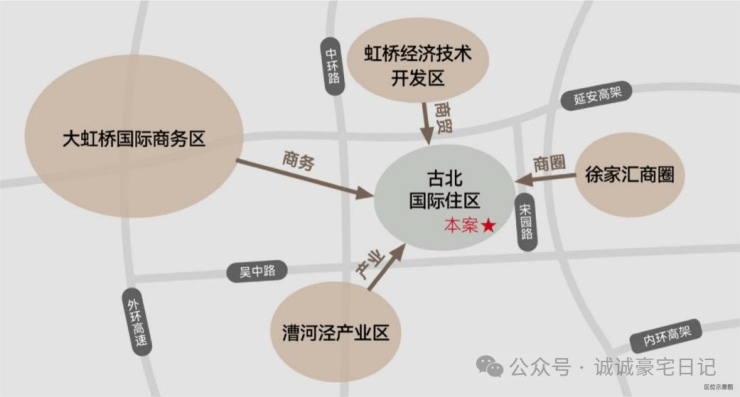 项目地处徐汇、长宁、闵行三区交汇处,是经贸产业核心圈中唯一的高端宜居板块。