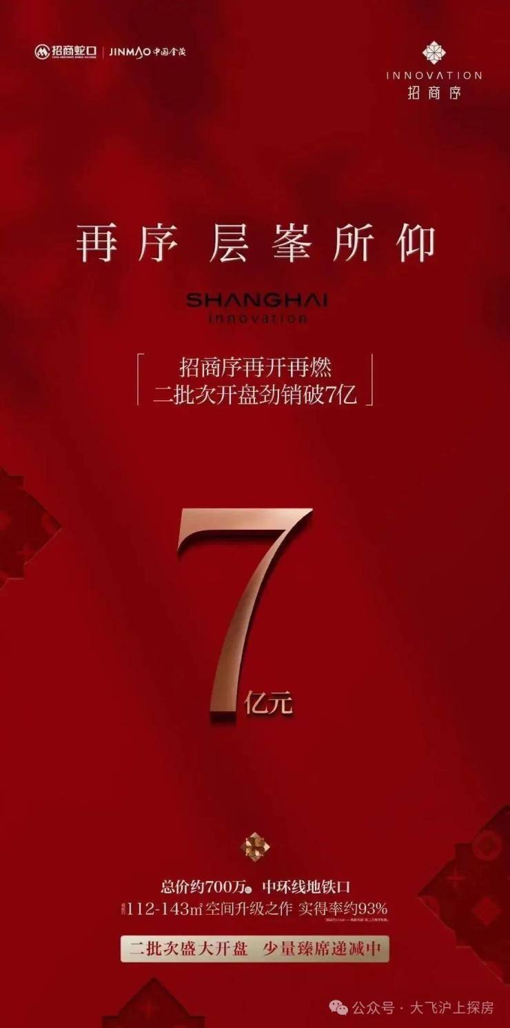 当上海楼市进入「分化时代」,真正能穿越周期的资产,必然在板块能级与产品创新上具备双重「抗跌基因」,继一批次热销九成后,招商序二批次新品再续传奇 ——今日开盘热销92%,总销额7亿。