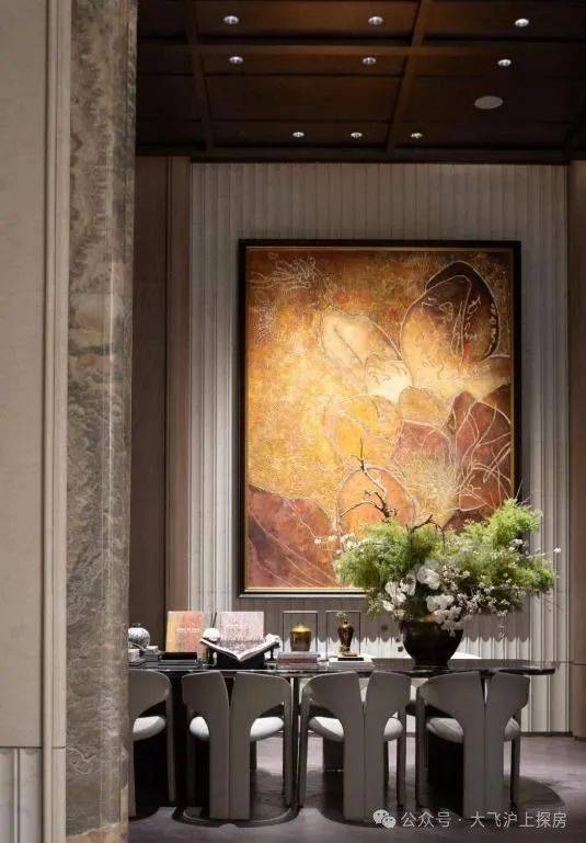 宝山招商序预约热线☎:400-8080-420✅✅运用圆弧形工艺切割、弧形倒角设计、非遗火烧金箔工艺、国家级非遗麦秆镶嵌工艺等 ,在大门、墙面、画作、沙发等诸多细节之中注入手工艺和非遗的痕迹,精细打磨费工费时,彰显对不可复制的敬重。