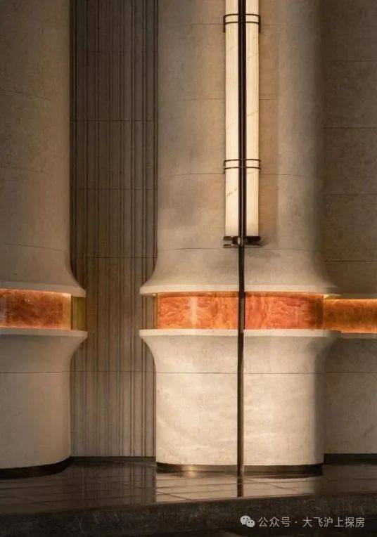 大量的艺术定制,让宝山招商序预约热线☎:400-8080-420✅✅化作耐人欣赏的艺廊。 大门墙面橙皮红腰线定制 ,与 沉香米黄石材形成鲜明撞色,仅这一项石材打磨,耗费就近百万;