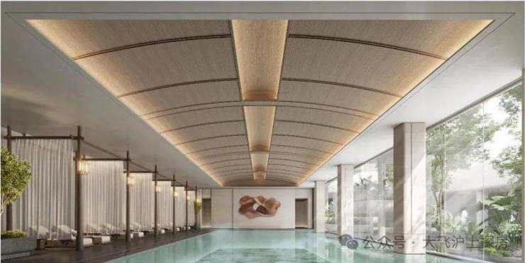 3、 超配演绎: 约 66 米「上海之冕」门头、近 4000㎡泳池会所与下沉式庭院 ,均 对标内环的豪宅尺度 , 岩板通铺、高仪 / 唯宝 等一线装标更对标内环千万级豪宅, 这种「超 配 兑现力」让产品在期房为主的市场中,成为确定性的价值标杆