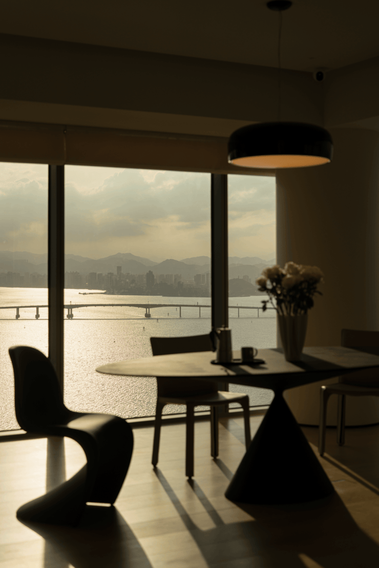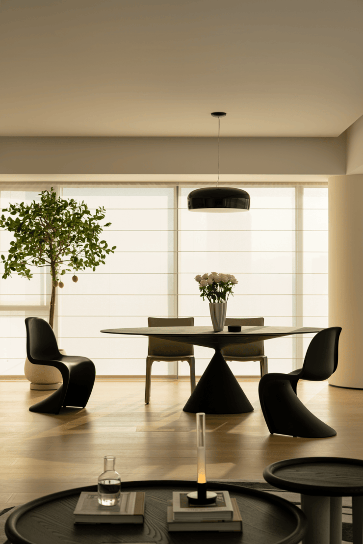 ①、尺度震撼:宽厅面宽约5.5米,3.5开间面宽共约11.5米,再加上约8㎡的阳台,使得整个家庭的公共区域尺度感十足、功能也更加灵活多变。