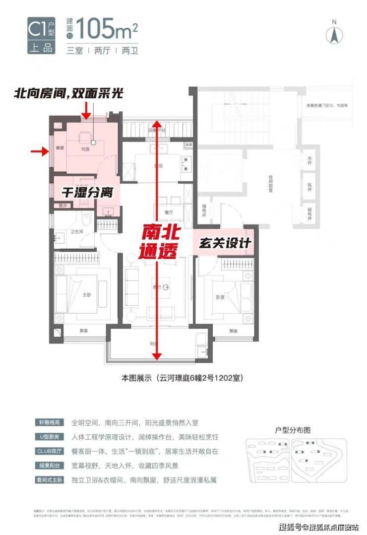 次卫干湿分离是标配;北向书房双面采光也是同级很大的亮点。