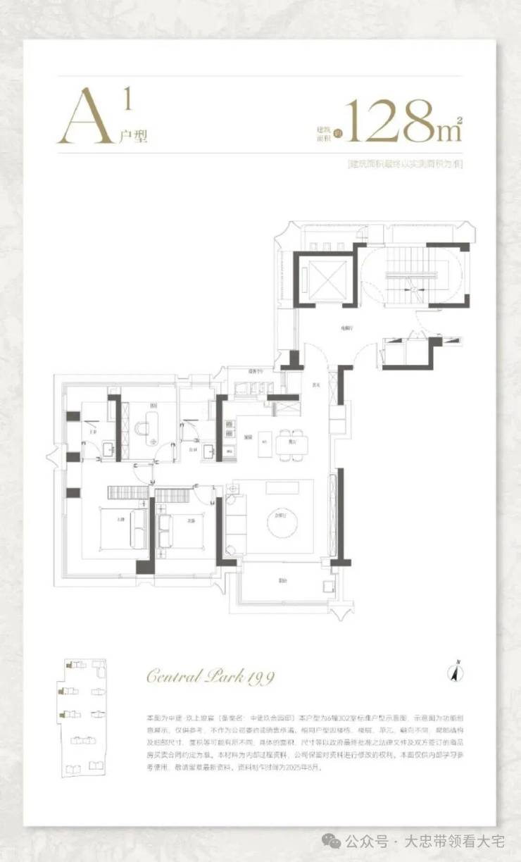 128㎡三房:约270°采光,主卧无柱转角飘窗