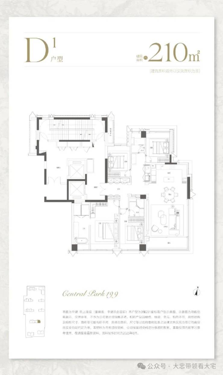 210㎡四房:边厅设计,东南双向采光,可俯瞰中央庭院与大宁公园