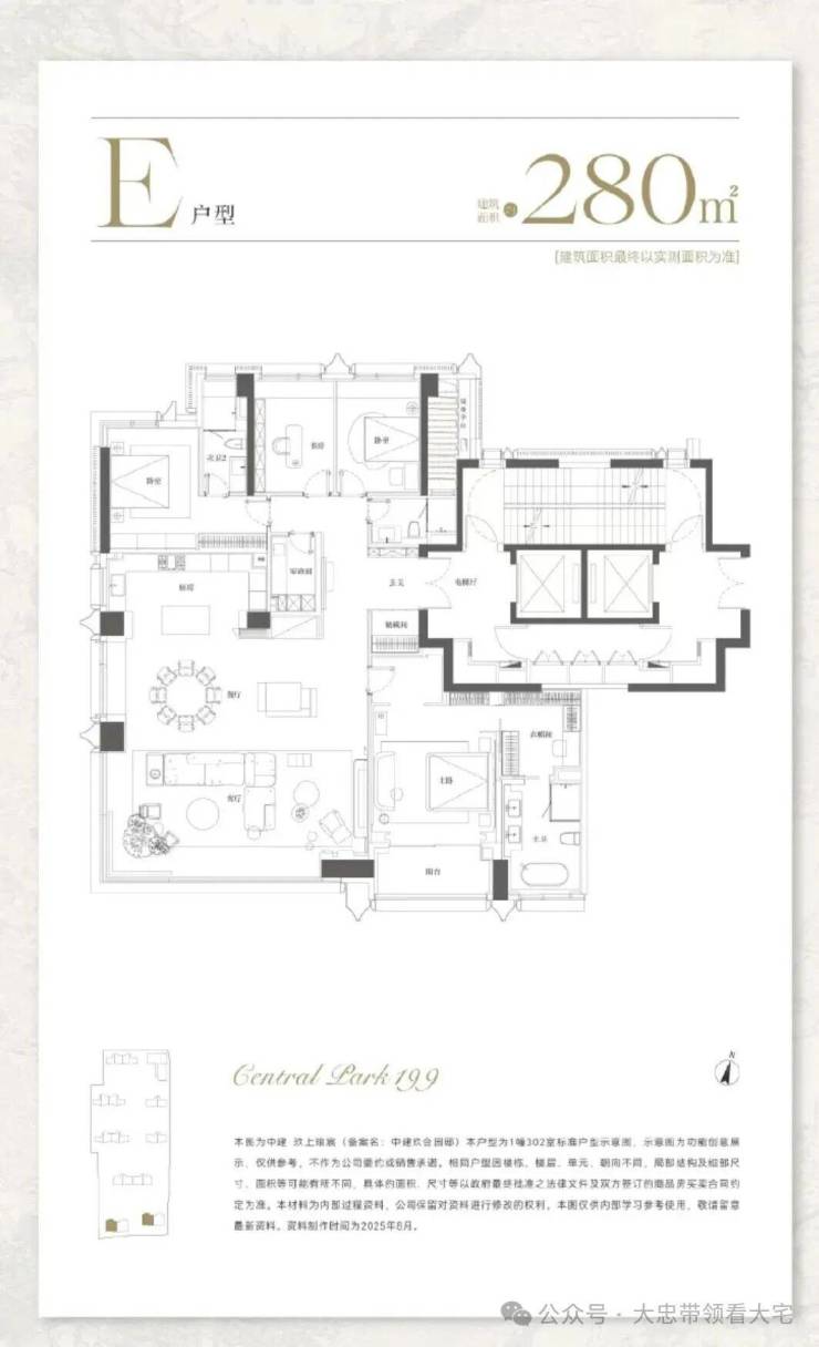 280㎡四房:边厅设计,大横厅尺度双向采光,可俯瞰中央庭院与大宁公园