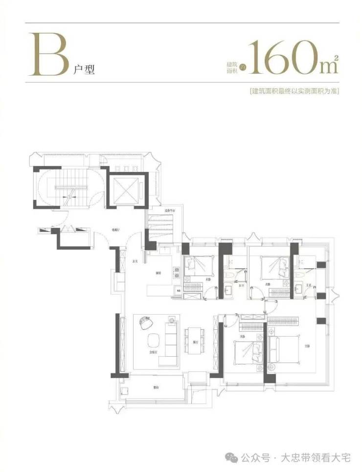 160㎡四房:四开间朝南,大横厅设计
