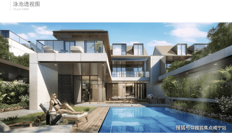 泳池里两旁的庭院,可以与亲朋好友相聚.
