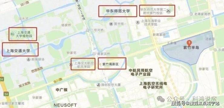 项目西侧是紫竹高新技术园区、北面是交大和华师大校园,以及紫竹基础教育园区,包含幼儿园至高中全龄段教育配套.