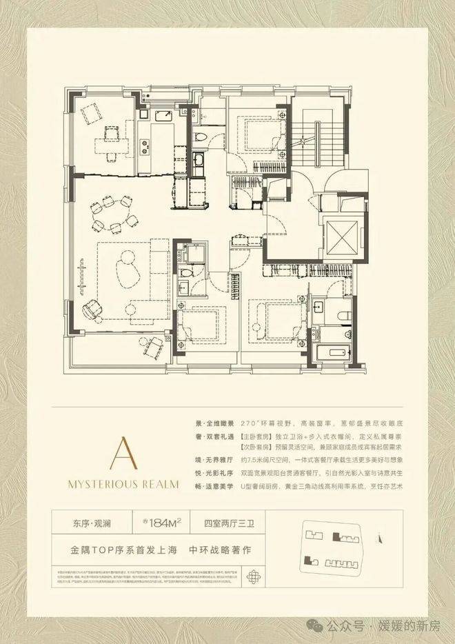 建面约184㎡的户型,每个空间都有自己的“功能”,却又不会互相打扰,像为多代同堂的大家庭量身定制。