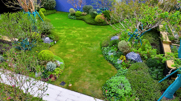 穿过大堂就是园林区域中央水景是“点睛之笔”:叠瀑从普拉达绿奢石对景墙上流下来,水流很缓,像“白噪音”一样治愈;池底藏了灵蛇元素的拼花,花纹灵动;植物搭配也有讲究:全冠移植的香樟夏天能遮阴,不用等几年才能成材;还有乌桕、樱花、桂花这些四季花木。