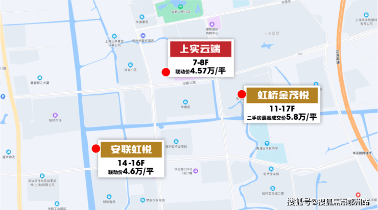 周边次新房虹桥金茂悦已有成交数据,二手房成交价高达5.8万/平,挂牌价也已超5.5万/平。
