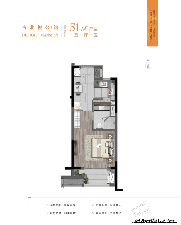 首先来看建筑面积约51㎡的户型: