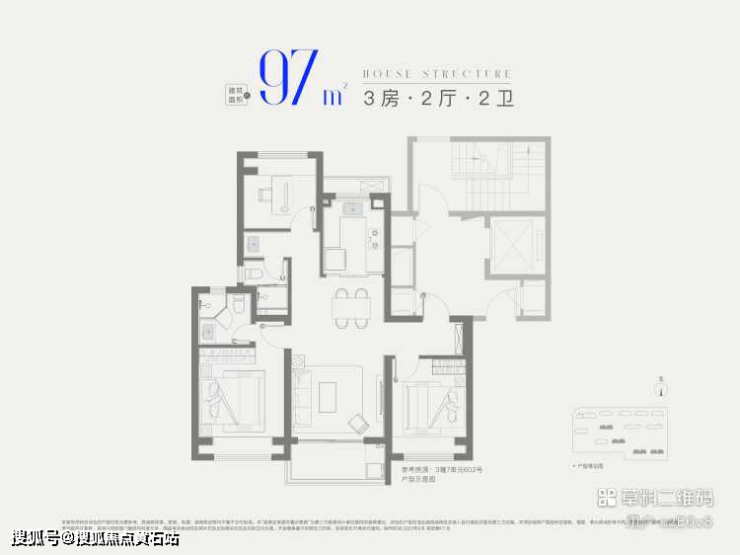 ●97㎡三房两卫(三期):总价405万起,一梯两户(无连廊),南北通透,三开间朝南+观景阳台,主卧套房设计,满足改善型家庭品质生活需求。