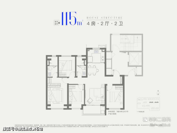 ●115㎡四房两卫(四期):总价500万起,一梯两户,四开间朝南(三房+客厅朝南),南北通透,奢阔空间尺度,适配多子女家庭或三代同堂。