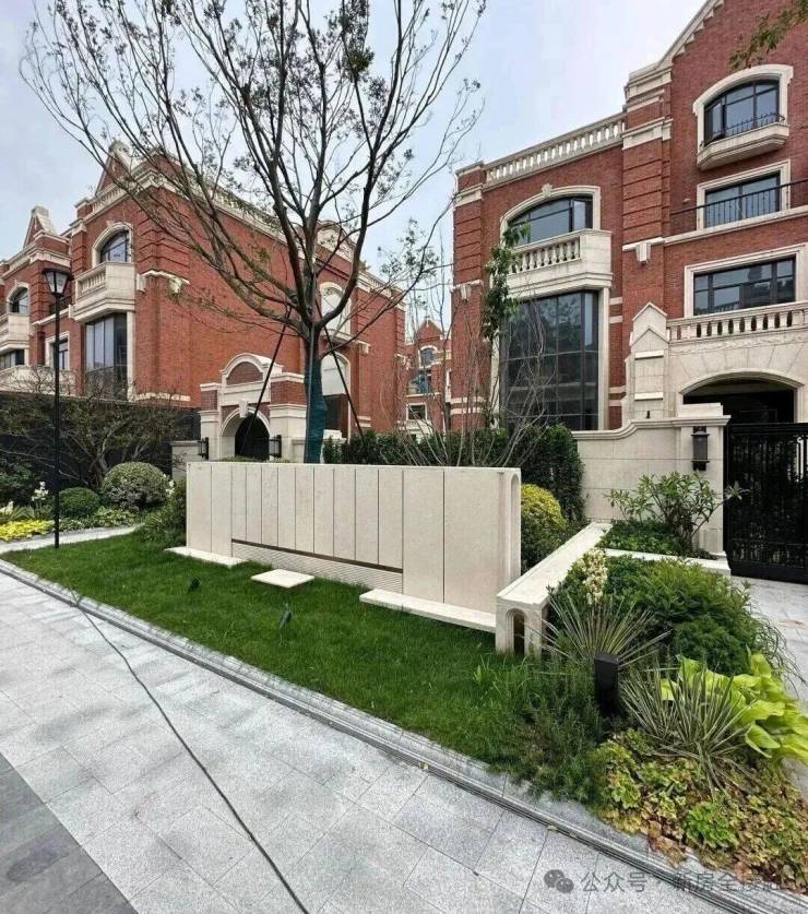 联排别墅采用英式维多利亚建筑风格,红砖与德国米黄干挂石材的搭配,形成温暖且经典的色调;经典长窗/方框窗/八角窗/拱形造型/坡屋面,赋予建筑精巧自然的美学质感。