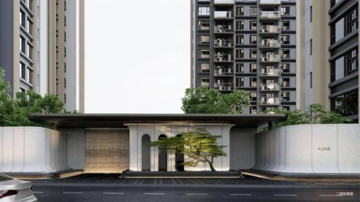 现代典雅立面,灰色搭配香槟金的色调,彰显不同建筑审美,外立面为品质铝板+玻璃幕墙,局部干挂石材和保温一体板,通过数控切割、精度弯弧、手工焊接、打磨抛光、七重清洁、烘干喷漆、高温定型等过十余步精细工艺,是高端住宅里 高于行业标准体系 的立面铝材。