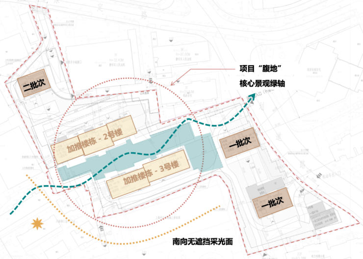 其一,虽然整个项目的地块边界比较曲折,但两栋正好处于地块最厚的“腹地”,距离周边城市道路都有一定的距离,在上海中心城区,圈出了一片适宜居住的静谧居所。