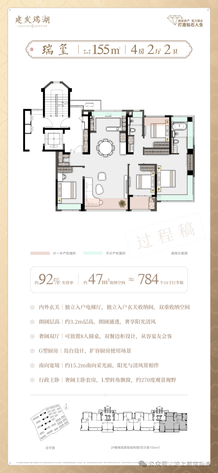 1.25超低容积率,淬炼出建发·瑞湖建面约185-205㎡藏品叠墅、建面约255-308㎡传世联排产品形态。