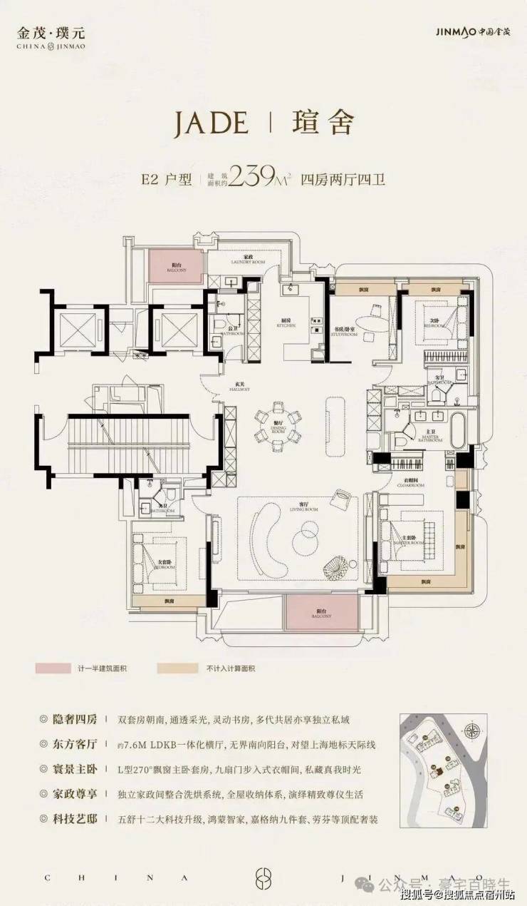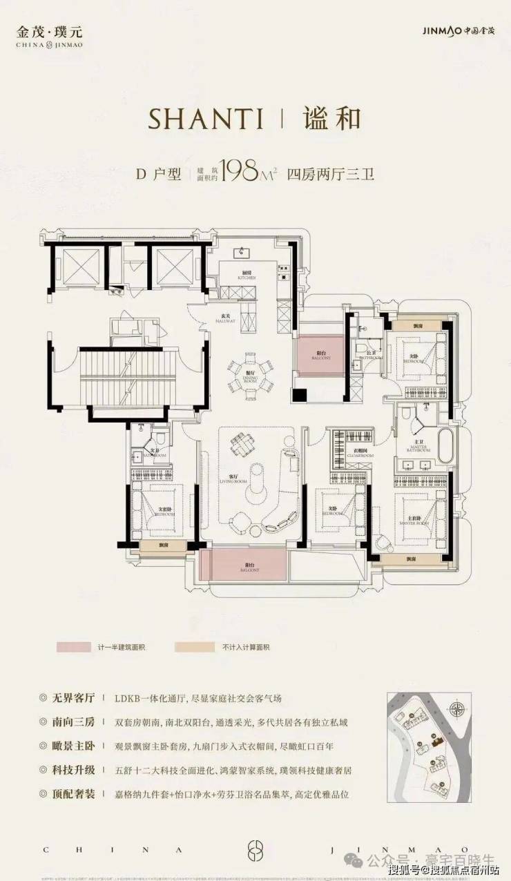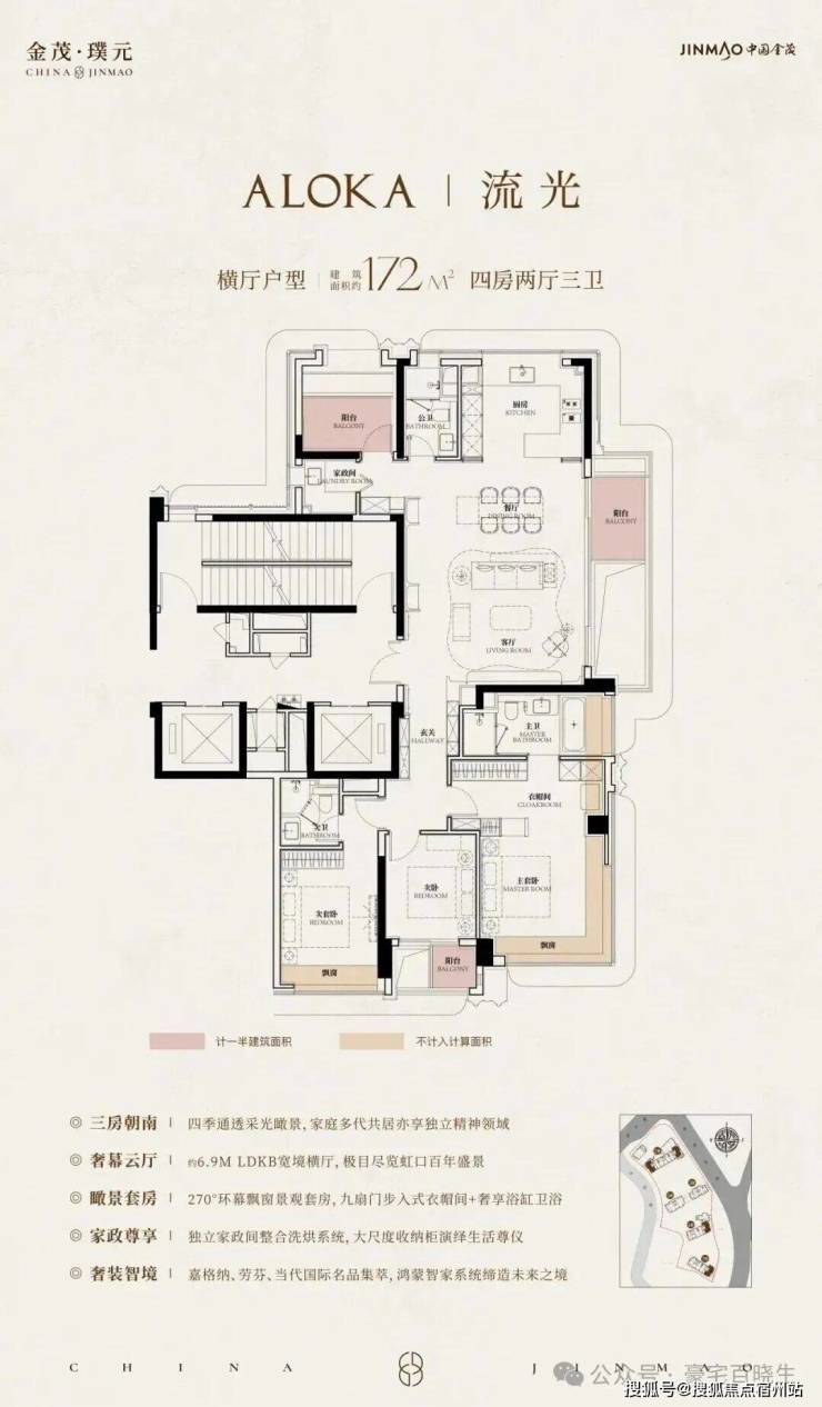 在建面约172㎡户型中,我们可以看到金茂对“三代同堂”生活方式的深刻理解!