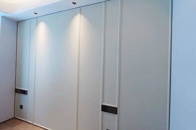 博世4件套(油烟机+燃气灶+洗碗机+烤箱),采用了大功率的侧吸油烟机和一个三眼灶,预留了双开门冰箱位置,还有怡口过滤器。上轨道三移门、可移动轨道插座、置物架也有。